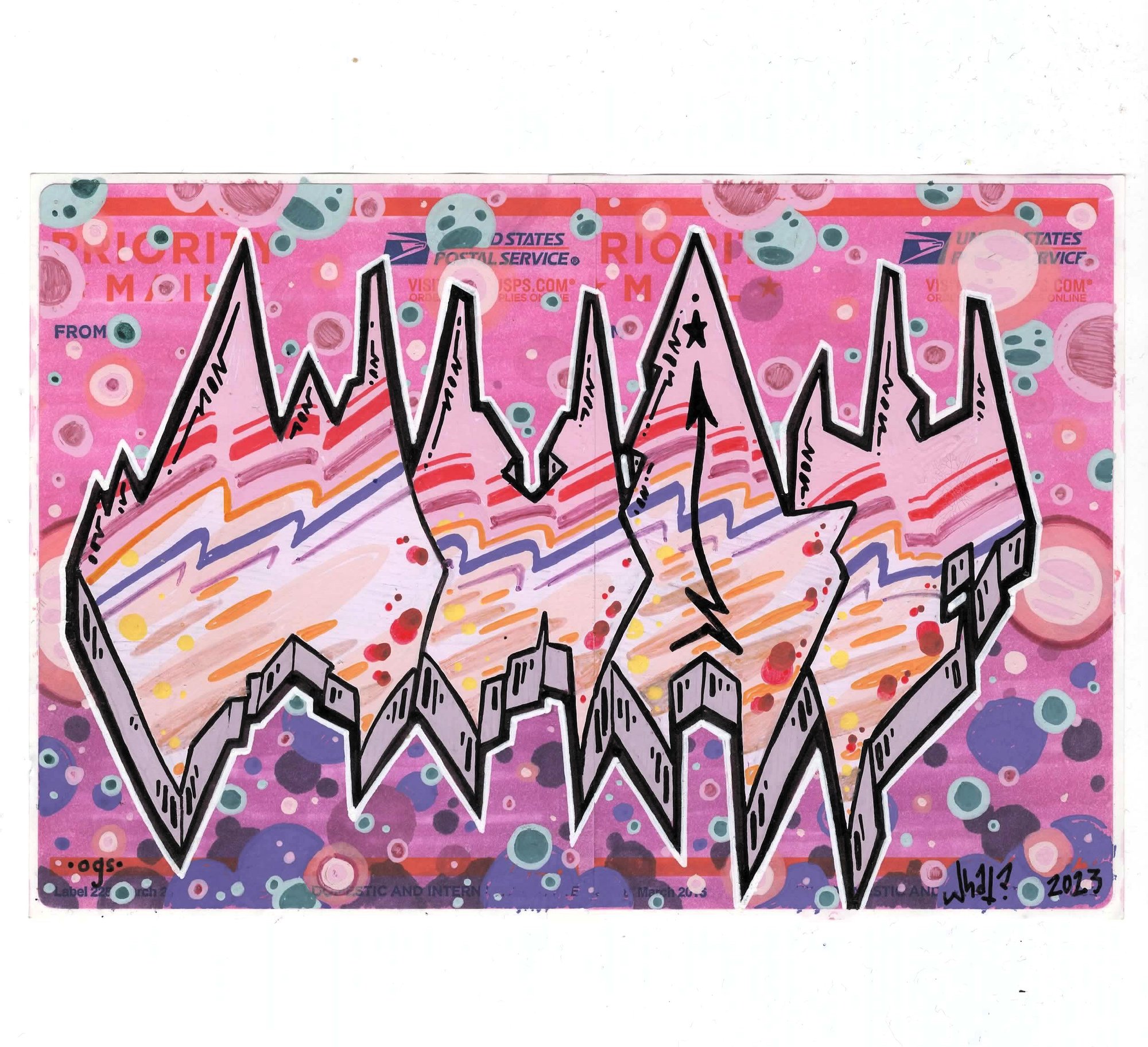 Mixed Media on 2 X 228 Priority Mail Stickers. Comes with a few Vinyls.