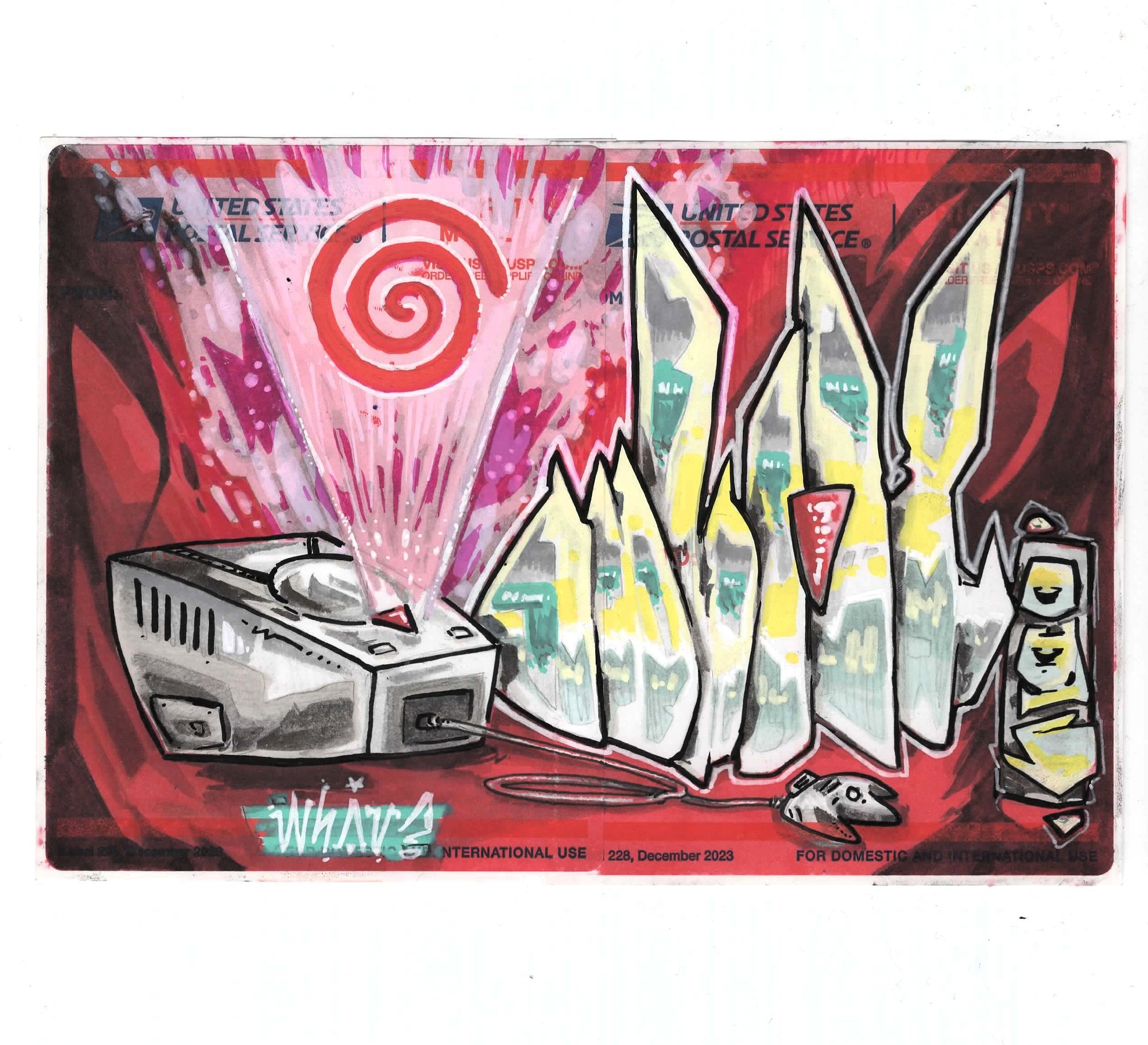 Mixed Media on 2 X 228 Priority Mail Stickers. Comes with a few Vinyls.